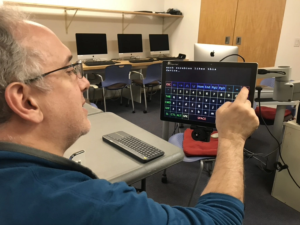 Our tech team develops custom solutions to keep pALS connected, independent, and able to communicate in their own voice at every stage.
